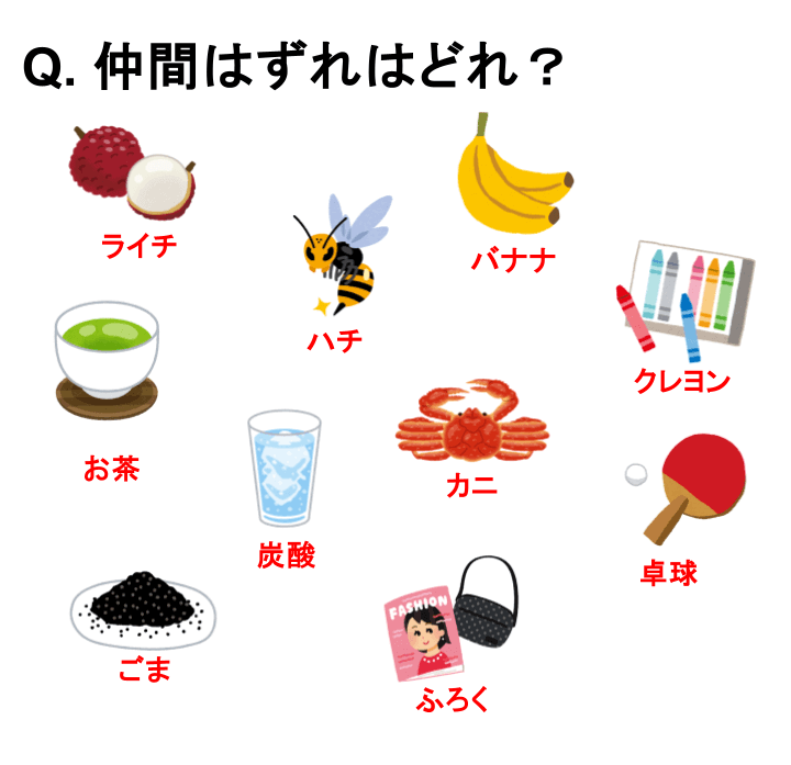イラストを名前に変換すると、共通する「あるもの」は隠れている。